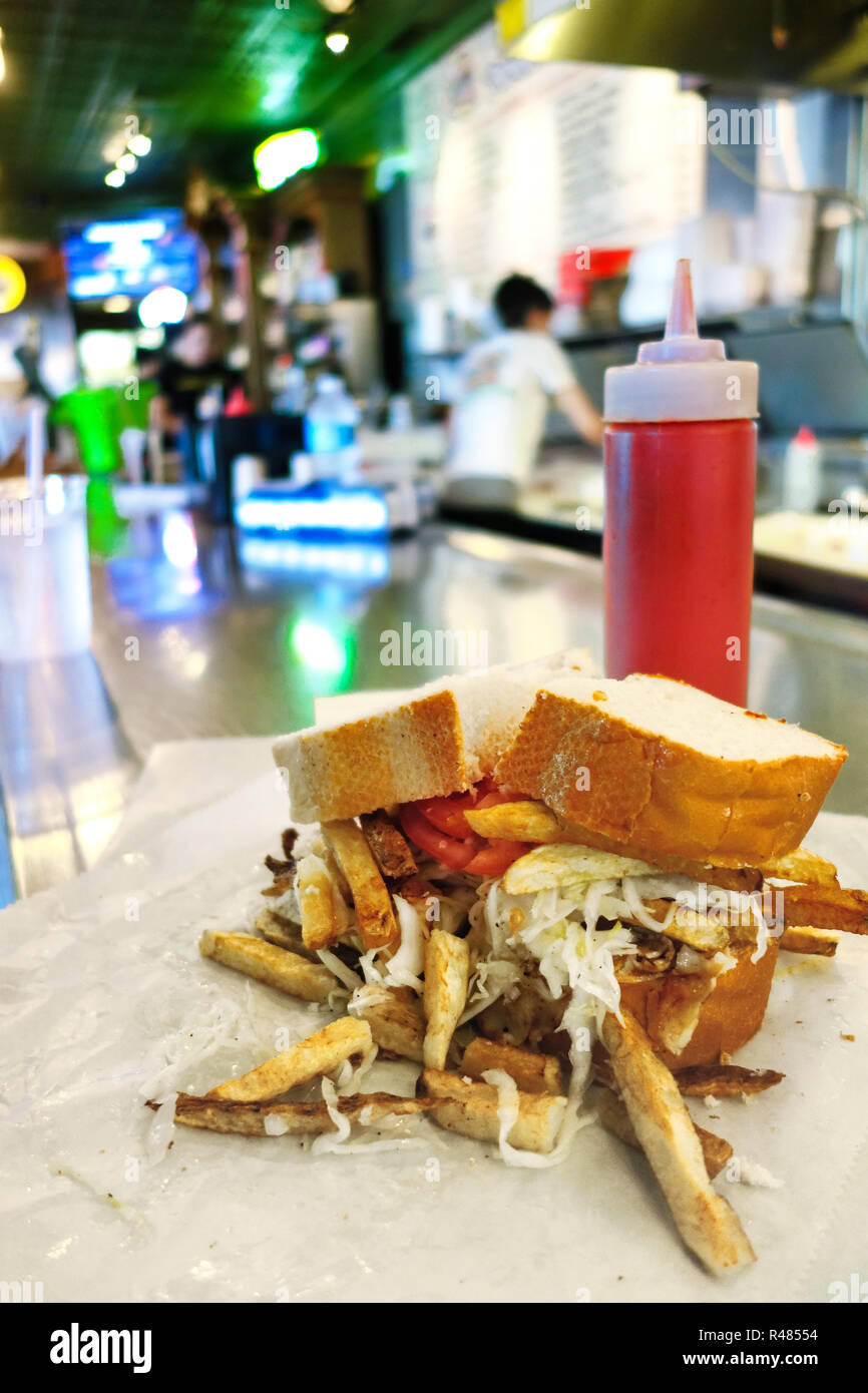 A Sandwich With French Fries And Cole Slaw On It At The Famous Primanti Brothers In Pittsburgh Pennsylvania Usa Stock Photo Alamy